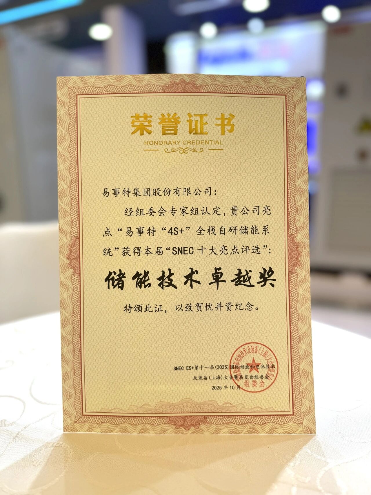 喜訊!易事特榮膺SNEC ES+十大亮點(diǎn) “儲(chǔ)能技術(shù)卓越獎(jiǎng)”